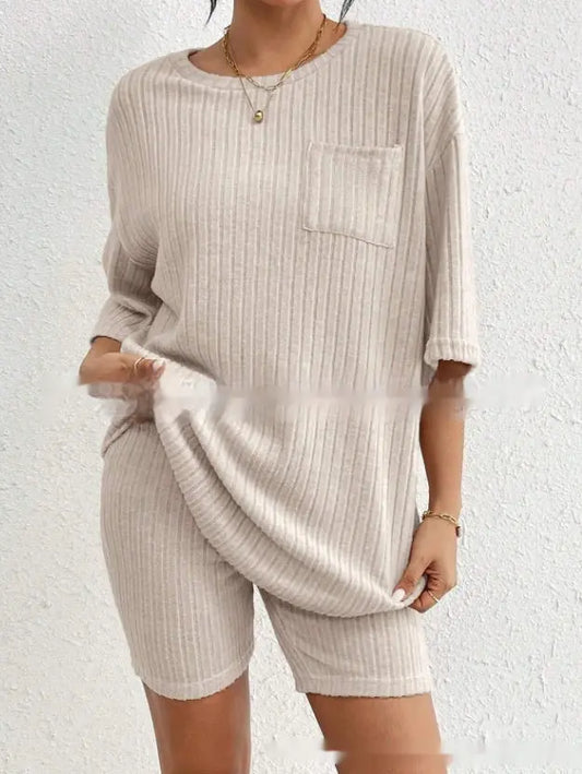 Fashion Rib Knitted casual 2-piece Set