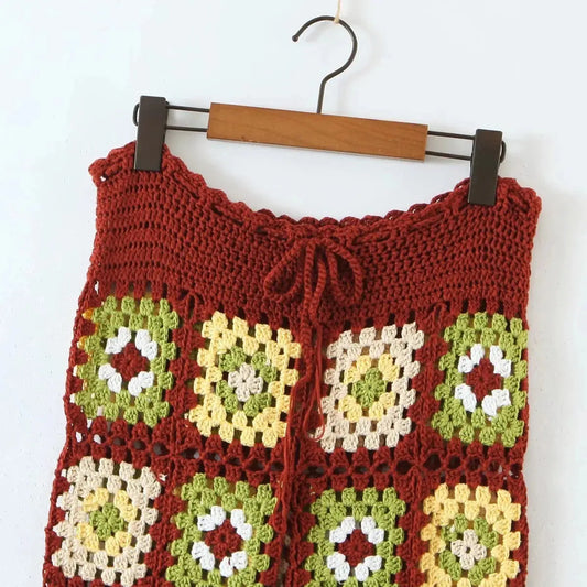 Flowers Knitted Backless Lace-up Dress