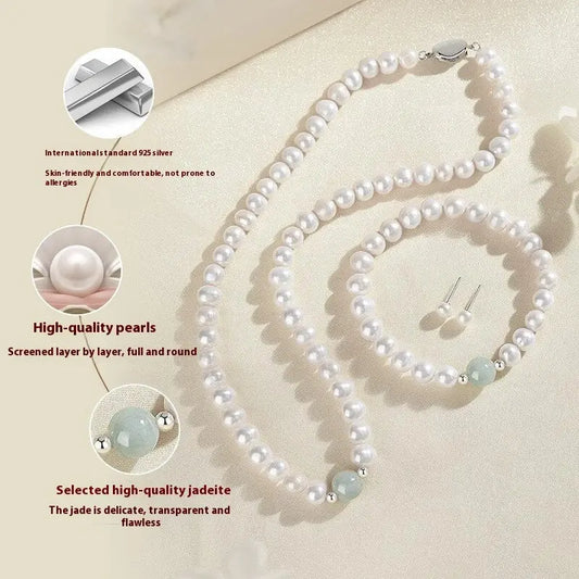Natural Freshwater Pearl Necklace Suit Green Jade