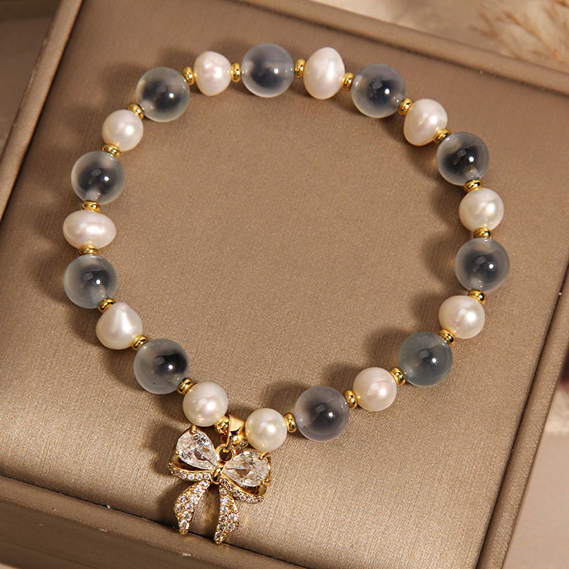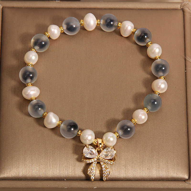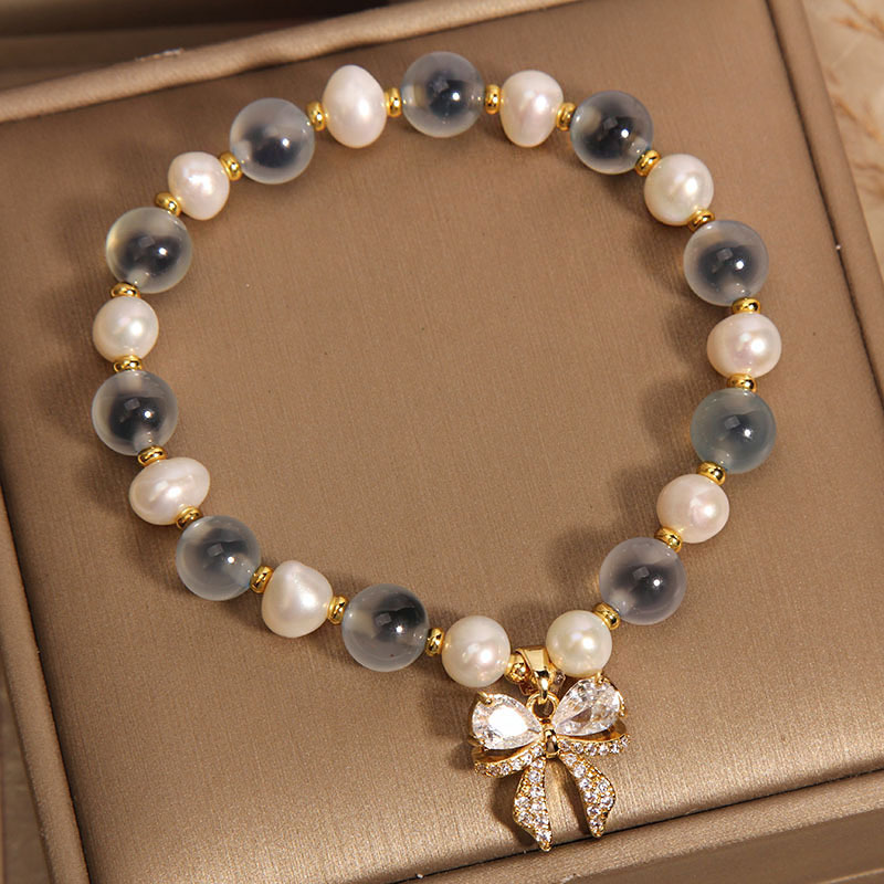 Colour: blue sugar heart agate freshwater pearl bow zircon, pink sugar heart agate freshwater pearl bow zircon, yellow sugar heart agate freshwater pearl bow zircon
